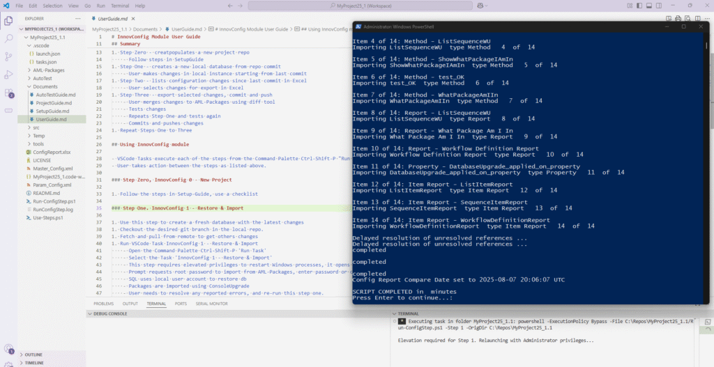 The import-export tool and AML are reliable, but a bit clunky to use. InnovConfigCE uses the core of these tools to make the work of preparing packages and data more streamlined, fewer manual steps, fewer opportunities for a fumble. It’s the fumbles that cause the problems recognized above.